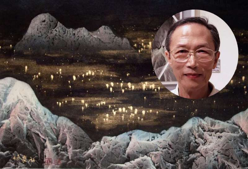 中国台湾北部海域涌升流作用旺盛,其带来的丰富营养造就了锁管的黄金渔场,因锁管有趋光性,渔船先以聚鱼灯集鱼,再逐步收拢光源将鱼群引导到撑开的网具内捕鱼。作者运用揉摺喷皴等现代水墨技法表现出台湾近海锁管季活动的盛况,金色的点点渔火灯光布满了整个深坠的海面,更隐喻年年丰收,富足平安。